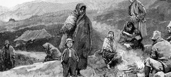 Some also pointed to the structure of the British Empire as a contributing factor. James Anthony Froude wrote that “England governed Ireland for what she deemed her own interest, making her calculations on the gross balance of her trade ledgers, and leaving moral obligations aside, as if right and wrong had been blotted out of the statute book of the Universe.”[11] Dennis Clark, an Irish-American historian and critic of empire, claimed that the famine was “the culmination of generations of neglect, misrule and repression. It was an epic of English colonial cruelty and inadequacy. For the landless cabin dwellers it meant emigration or extinction…”[150]