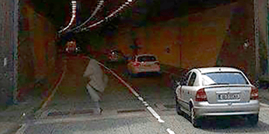 “I couldn’t believe my eyes – it looked like an old man wearing an old tweed coat walking down the road into the tunnel.
