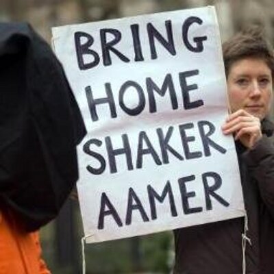 - In February 2011, Amnesty International called Aamer’s ongoing incarceration a “mockery of justice” and denounced the “cruel limbo” he had been left in.[65][68] At the same time The Guardian reported that people had sent 12.000 emails to US Secretary of State Hillary Clinton and UK MPs in support of Aamer.[65][69]