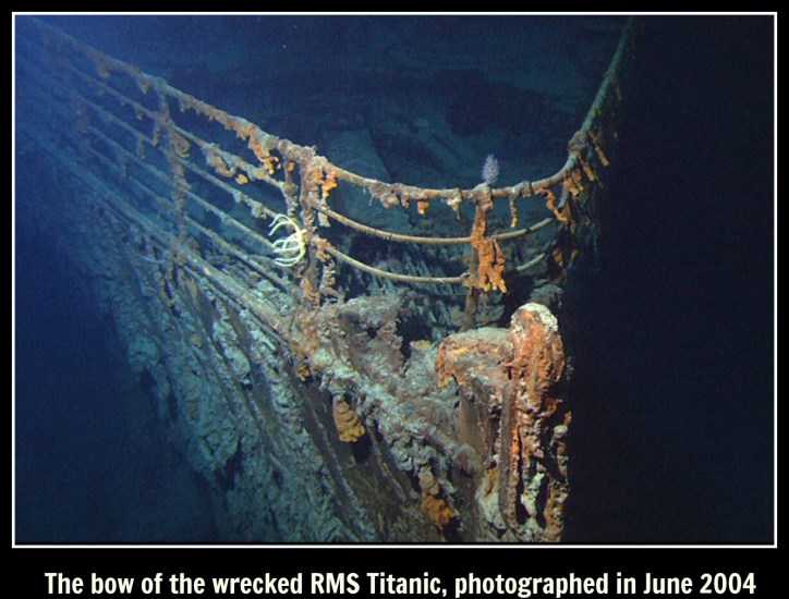 The bow of the wrecked RMS Titanic, photographed in June 2004 text Published on April 13, 2016 in The Titanic -The Most Iconic Ship in History – Rare PicturesFull resolution (1330 × 1012) ← Previous Next →