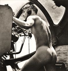 Since Japanese coastal defense guns were firing at the plane while it was in the water during take-off, this brave young man, after rescuing the pilot, manned his position as machine gunner without taking time to put on his clothes.