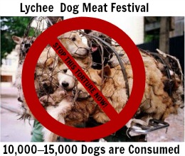 The Lychee and Dog Meat Festival, commonly referred to as Yulin Dog Meat Festival, is an annual celebration held in Yulin, Guangxi, China, during the summer solstice in which festival goers eat dog meat and lychees. The festival spans about ten days during which it is estimated that 10,000–15,000 dogs are consumed. The festival has been criticised by animal welfare supporters.