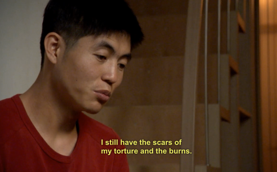 According to Shin, the guards lit a charcoal fire under his back and forced a hook into his skin so that he could not struggle which caused many large scars still visible on his body.