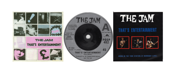 Although never released as a domestic single in the UK during the band’s lifetime, “That’s Entertainment” nonetheless charted as an import single (backed by a live version of “Down in the Tube Station at Midnight“), peaking at No. 21. It was given its first full UK release in 1983 and peaked at No. 60. A second reissue in 1991 also made the top 50.