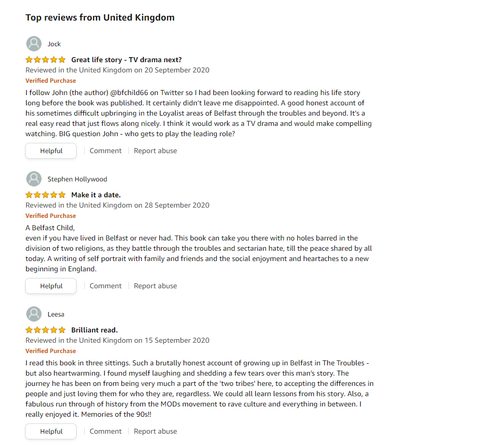 You have been reading extracts from my No.1 best selling book A Belfast Child.