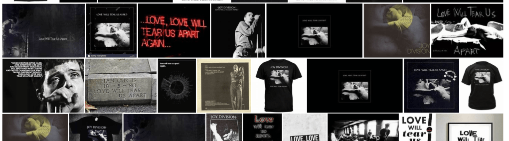 Following Curtis’s suicide, his wife Deborah had the phrase “Love Will Tear Us Apart” inscribed on his memorial stone.